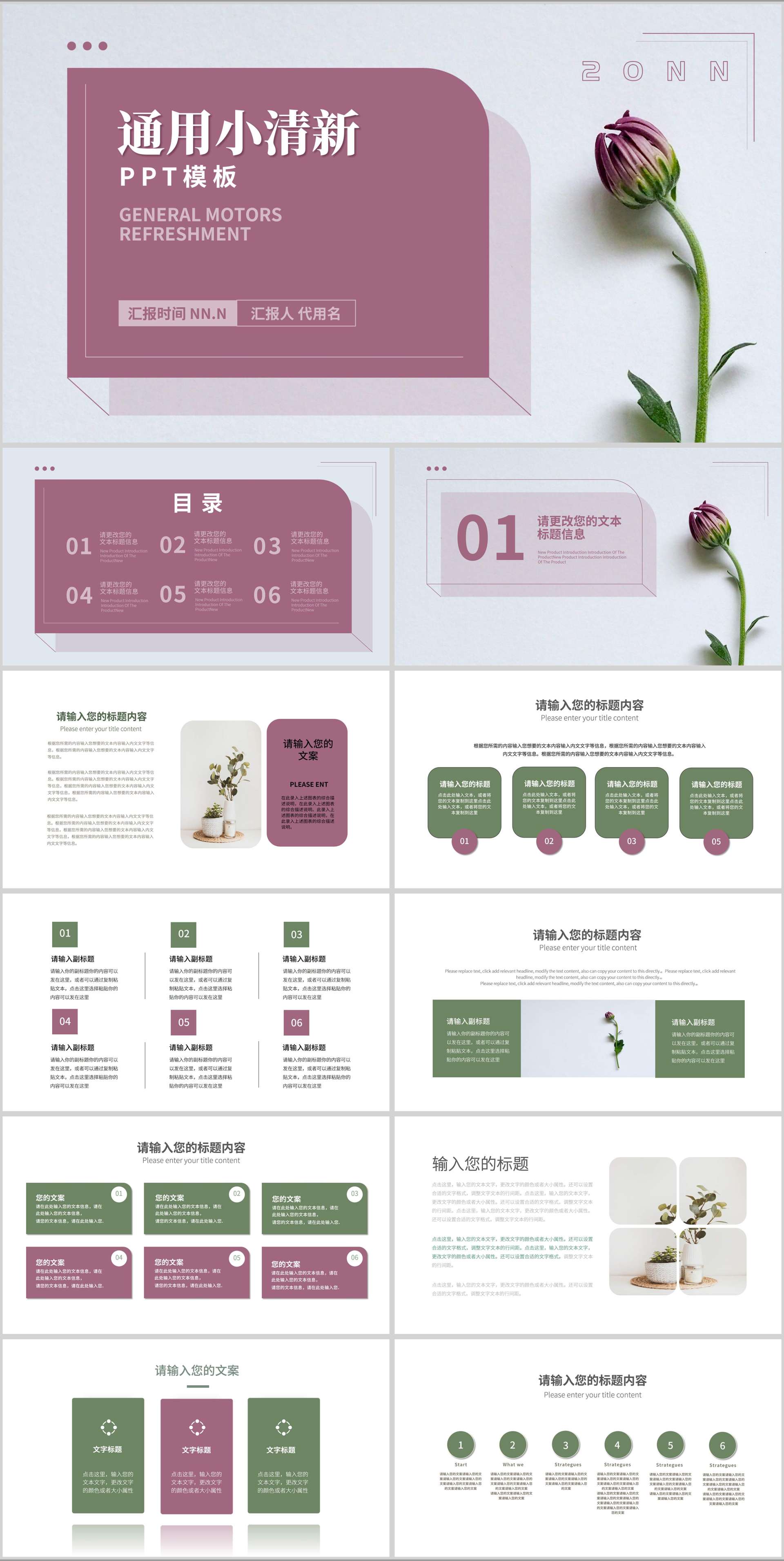 通用小清新花朵项目总结汇报PPT模板