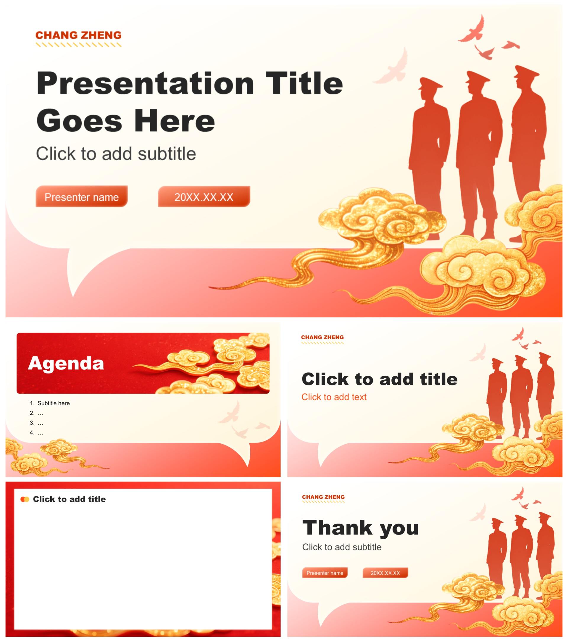 红色简约风红军长征精神长征纪念日党课PPT主题模板